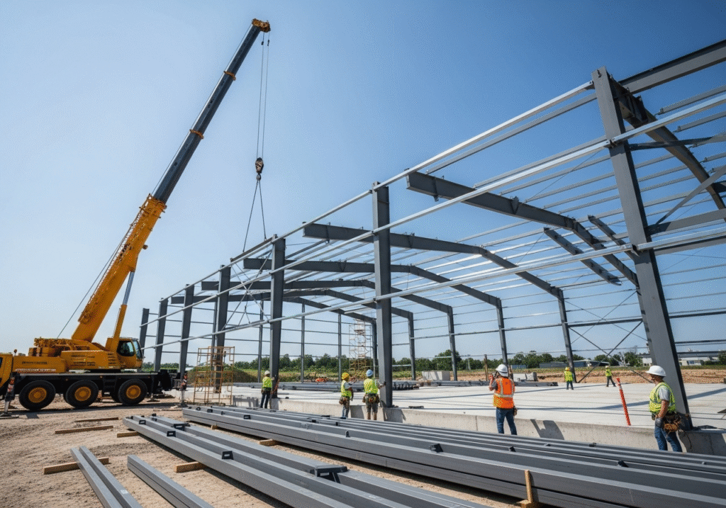 The process begins with the design and engineering phase. Once the client approves the final drawings, the fabrication starts in the factory. Each component—every beam, column, and purlin—is cut, welded, and painted according to the precise specifications. After a quality check, the complete building kit is shipped to the site. The on-site work involves assembling these pre-made parts. The primary frames are erected first, followed by the secondary members, and finally, the cladding is attached. It is more of an assembly process than traditional construction.