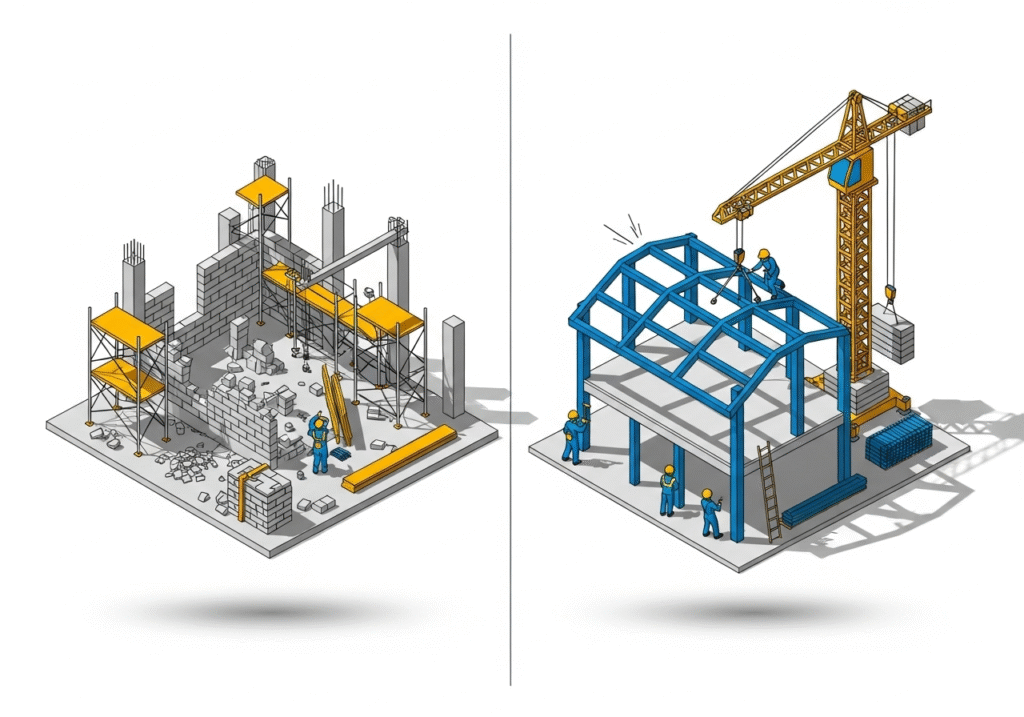 PEB stands for Pre-Engineered Building. It is a construction method where the building’s structural components are designed and manufactured in a factory, off-site. These components are then transported to the construction location and assembled. This approach is different from traditional construction, where most of the fabrication and building happens directly on the project site. The entire system is engineered to work together from the start.